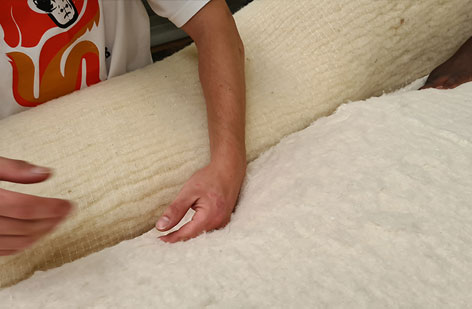 Die Faden-, Knopfheftung verhindert ein Verrutschen des zu Beginn unverdichteten Naturvlies.